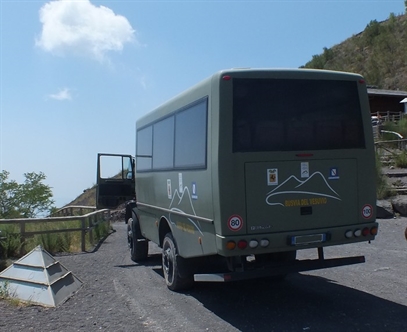 Par chance (!?!) nous sommes sur le parking de Busvia Del Vesuvio, une entreprise qui vous propose l'ascension en camion 4x4 (le parfum de l'aventure) pour un prix dérisoire (non je plaisante !! 20€ par personne)