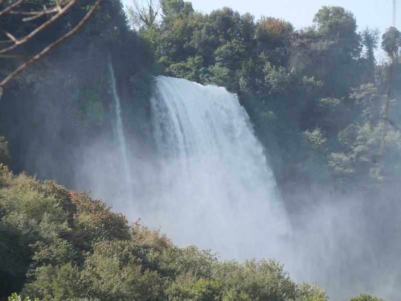 Cascata delle Marmore : chûte d'eau artificielle mise en place par les romains pour assecher la région (165 m de dénivellé, la plus haute chûte d'eau artificielle du monde). Les lâchers d'eau se font à heures régulières. Confiants dans notre timing large, nous nous trouvons devant une route barrée à 5 km des cascades ce qui nous obllige à un détour de 25 km à vitesse honteuse pour arriver à temps pour le lâcher