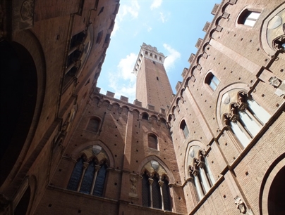 Direction Sienne et sa piazza del campo et sa Torre de Mangia (102 m). La très belle fontaine Gaia met en valeur cette immense place en forme de coquillage. Nous en profitons pour nous restaurer avec un sandwich inoubliable dans une petite épicerie avec du merveilleux parmigiano et du jambon local.