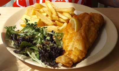 Aucun regret, la petite ville est superbe avec un trés joli front de mer et une mer chaude (non quand même pas !!) . Et la surprise du jour, un fish and chips extraordinaire dont nous nous souviendrons longtemps ... (demander le classic fish and chips) au BeachView Restaurant.