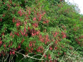 Les Fuchsias magellanica se sont ici acclimatés et forment de véritables murs de verdure