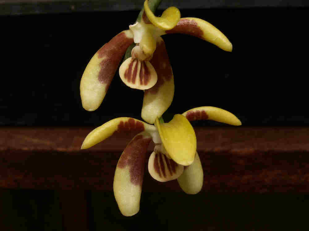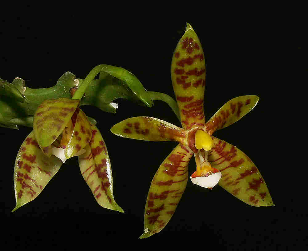 Espèce découverte en 1860, le Phalaenopsis cornu-cervi a une aire de répartition très étendus qui explique les nombreuses formes de sous-espèces. . De fait, ces formes sont difficilement identifiables uniquement par les fleurs. La forme typique de la fleur de P. cornu-cervi est petite (2,5 cm) et cireuse, de couleur jaunâtre parcouru de tâches irrégulières de brun-rougeâtre. Floraison toute l'année. Les fleurs apparaissent successivement sur une tige florale large et plate. Plante à faible développement, assez facile de culture